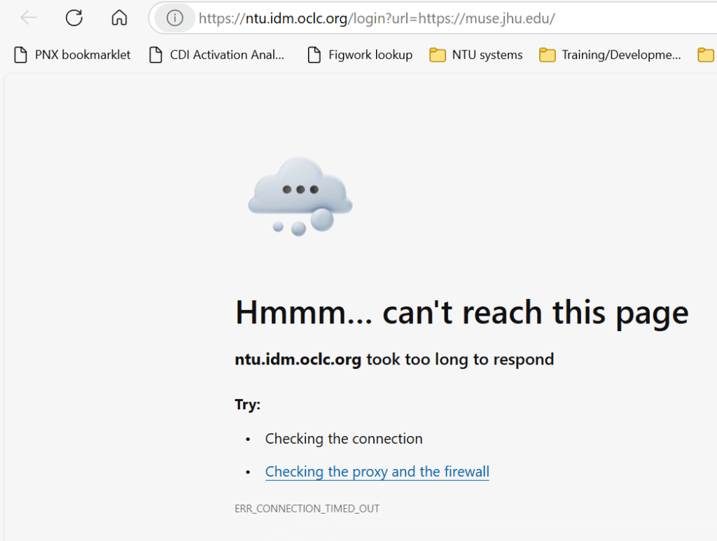 Following links from Library OneSearch and from records listed by the Find Databases service leads to a connection time-out browser error.